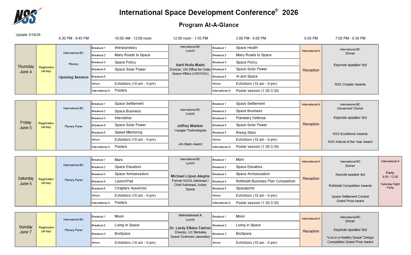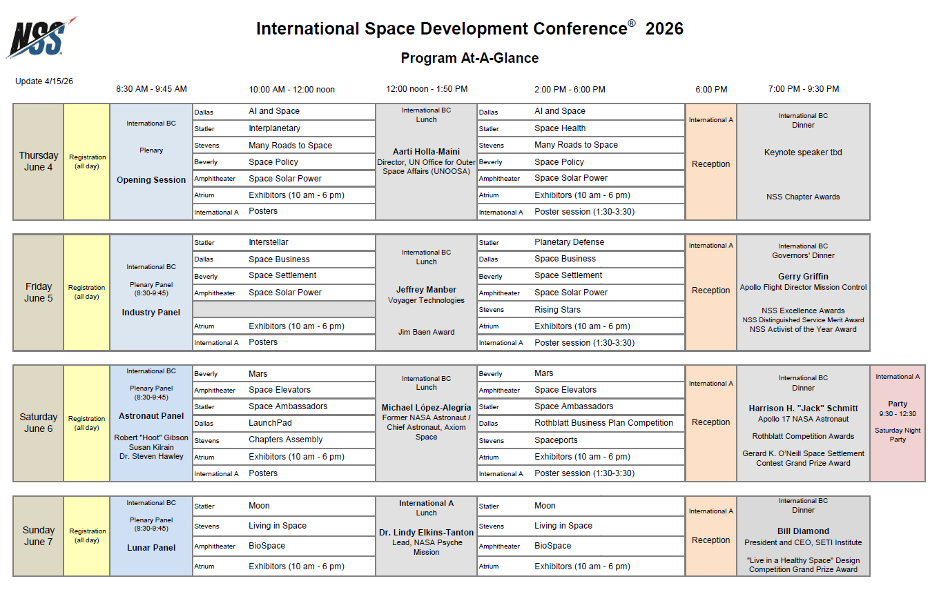 ISDC 2026 begins the morning of Thursday, June 4, and ends after dinner on Sunday, June 7. The schedule is available below. Final program details are being confirmed.